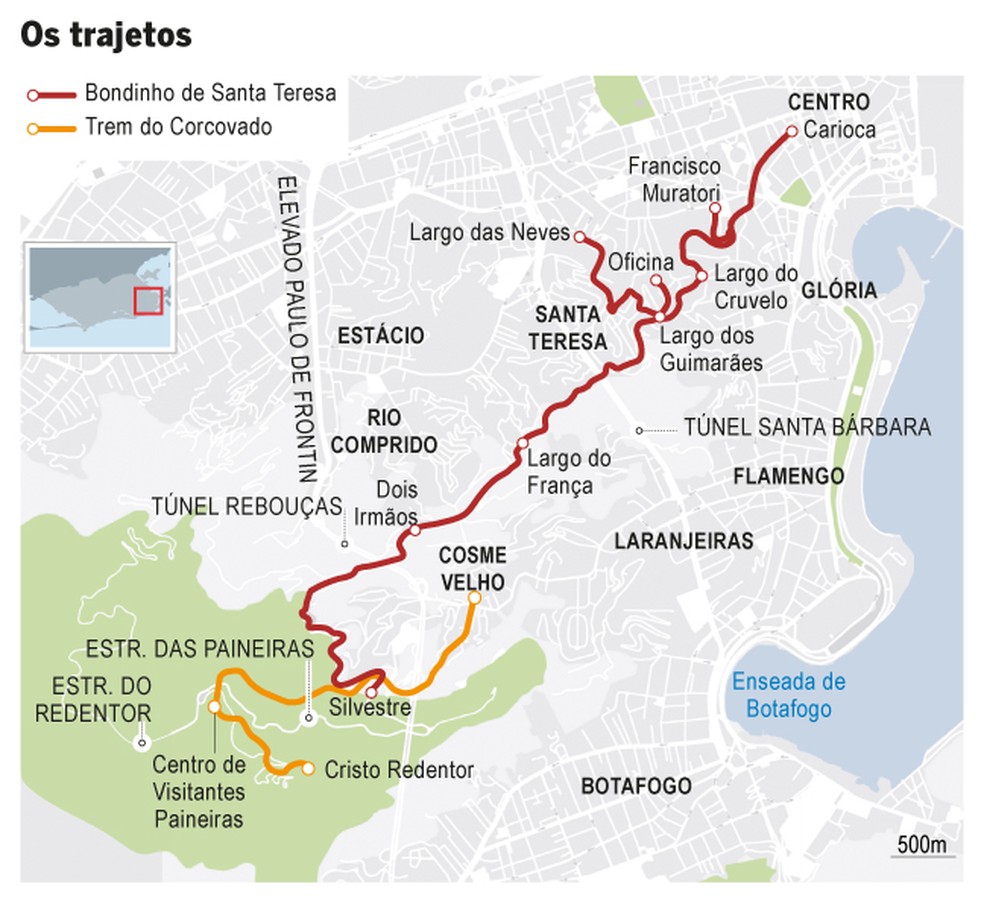 Mas, antes mesmo de fazer essa conexão, o passageiro poderá aproveitar o trajeto de cinco quilômetros (por sentido) entre o Dois Irmãos e o Silvestre. É possível conhecer um pouco mais de Santa Teresa, observar a imensidão verde da floresta e ver o próprio Cristo Redentor por outros ângulos. Todo o percurso teve a iluminação pública trocada para lâmpadas de LED. Os novos trilhos são semelhantes aos que são adotados no VLT Carioca, mas de outro fornecedor: emitem menos ruído que os anteriores. Para o bondinho fazer todo o percurso da Carioca até o Silvestre, falta instalar trilhos em um trecho de 300 metros. A rota está desativada desde 2008, quando cabos elétricos e peças metálicas da via foram furtados.