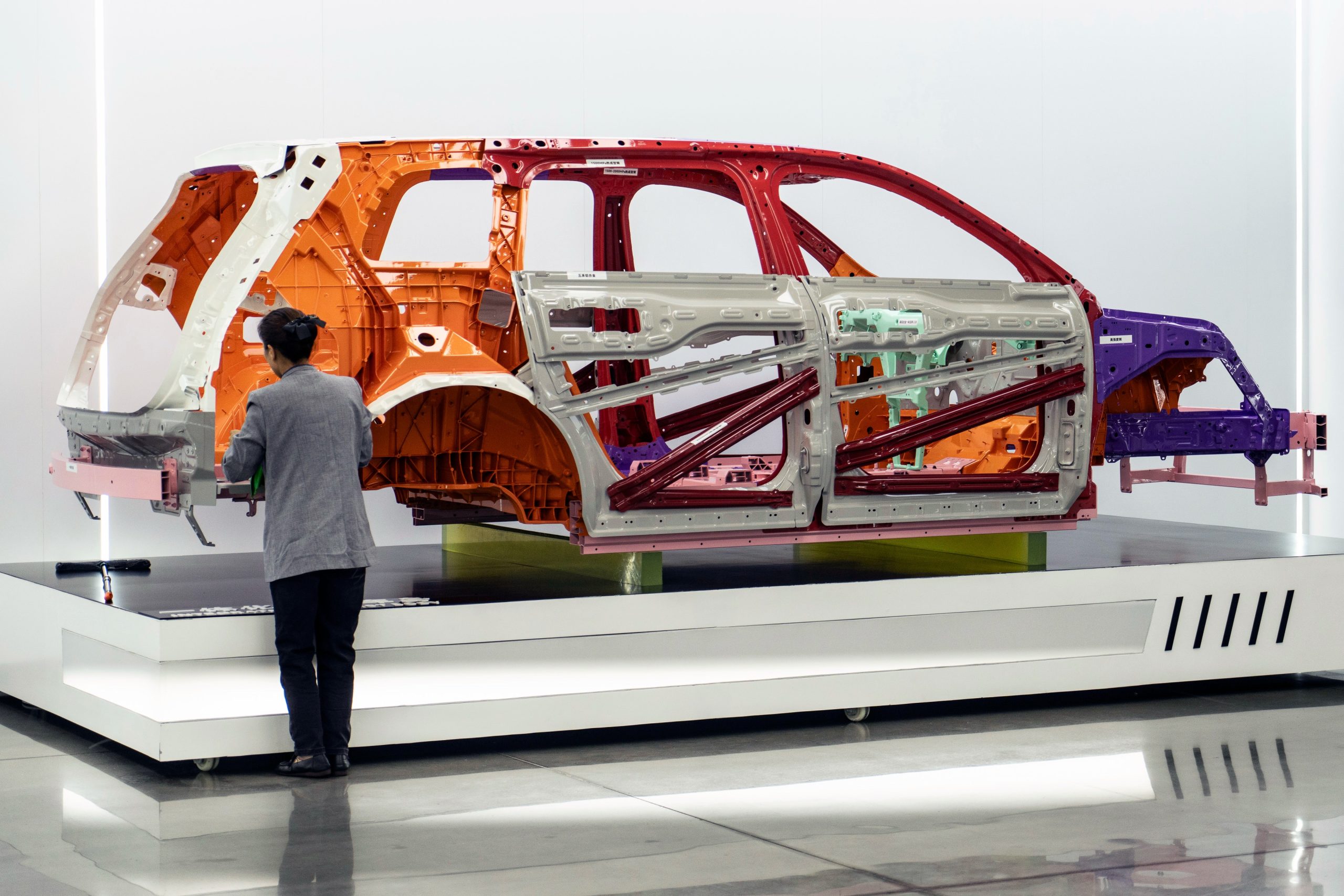 Estrutura de um veículo durante montagem na fábrica da Seres em Chongqing, na China