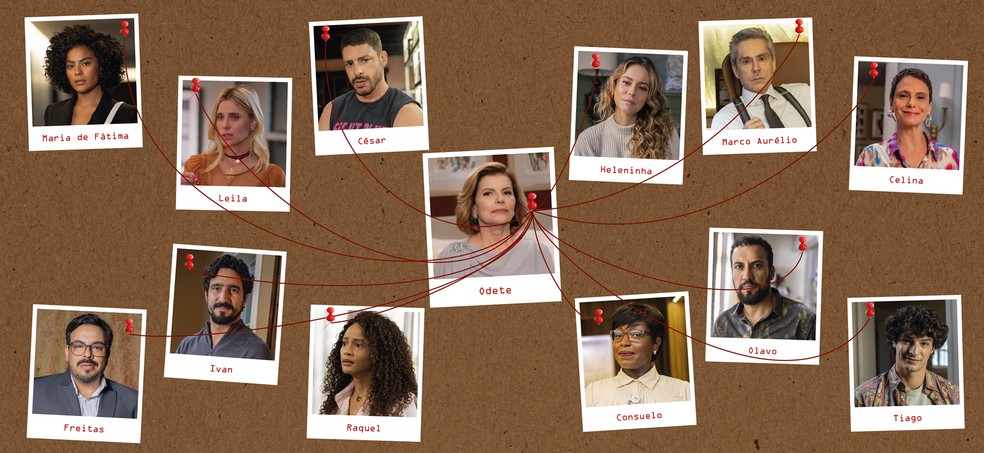 Quem matou Odete Roitman? Quadro junta suspeitos do crime em "Vale tudo" — Foto: Arte de Gustavo Amaral