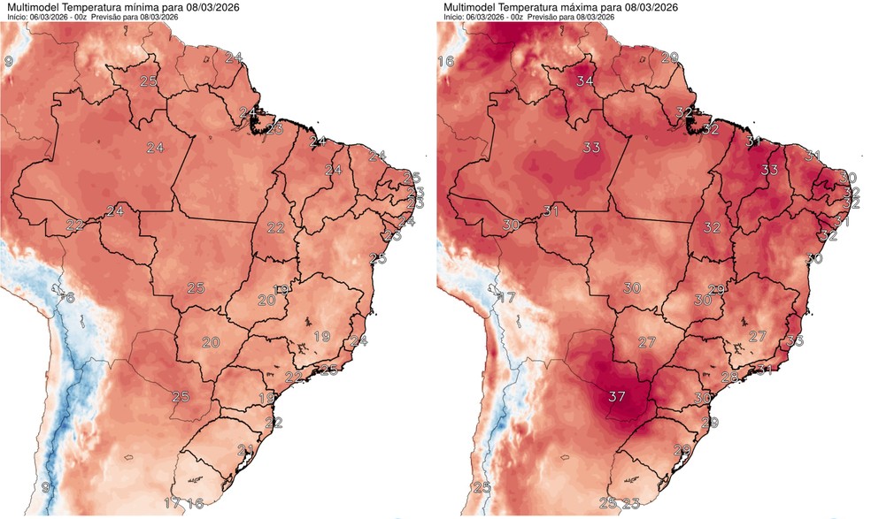 — No Centro-Oeste tem o calor e a umidade que vem da Amazônia, então forma aquele corredor que se estabelece, principalmente no sábado, em Mato Grosso, Goiás e Distrito Federal — esclarece a meteorologista.