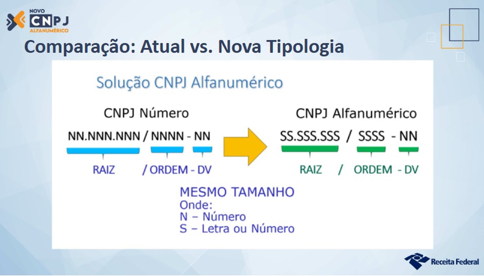 O formato atual, composto por 14 dígitos exclusivamente numéricos, garante ao sistema da Receita Federal cerca de 100 milhões de combinações. Nos últimos anos, porém, o órgão observou um expressivo aumento no número de empresas abertas, que já ultrapassa 60 milhões de inscrições ativas no país.