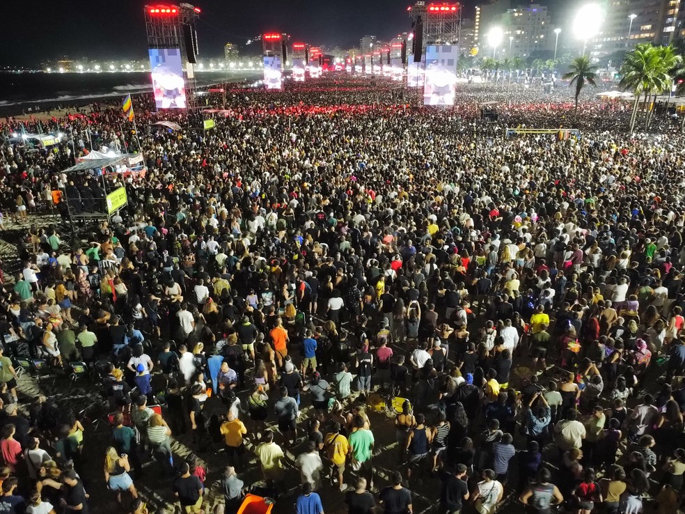 A falta de telões virados para a área do calçadão e da Avenida Atlântica frustrou uma parte importante do público que não conseguiu chegar na areia lotadíssima