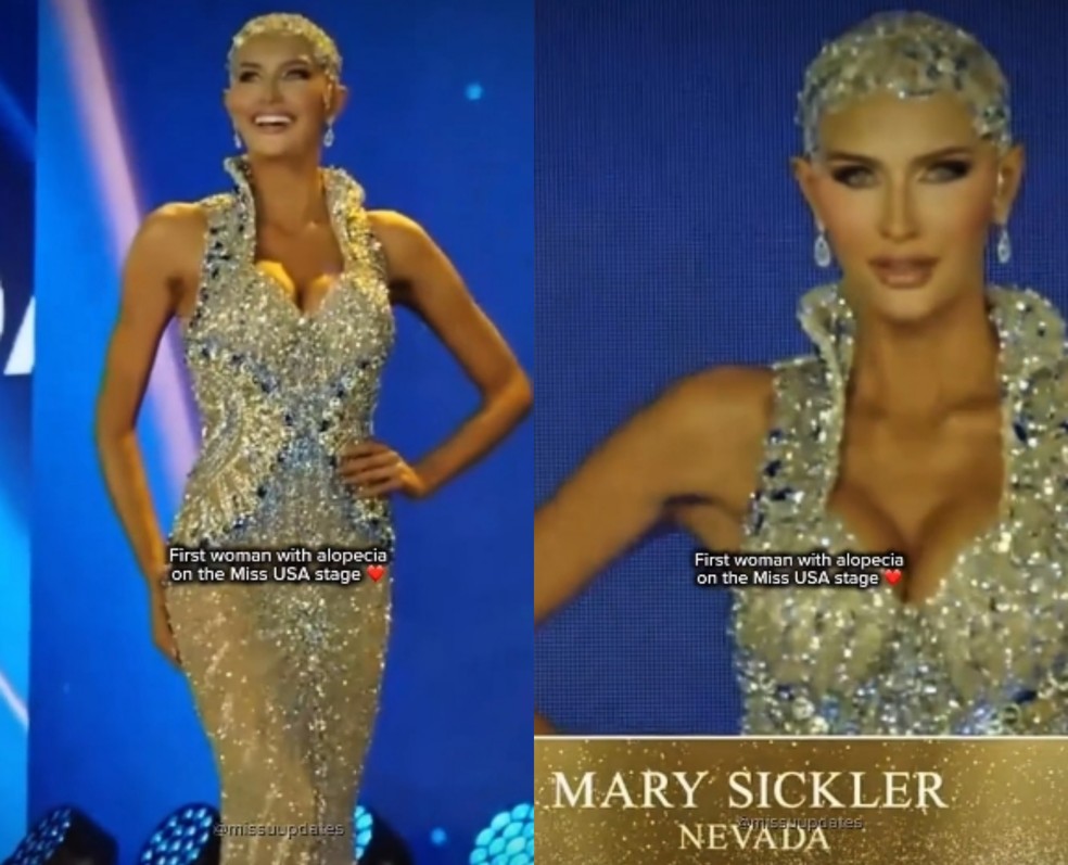 O vestido de Sickler, um deslumbrante traje prateado com bordados ornamentados e cauda longa, refletia toda a confiança que a jovem exibia. Com essa aparição, ela fez história como a primeira mulher com diagnóstico público de alopecia a competir pelo título de Miss EUA.
