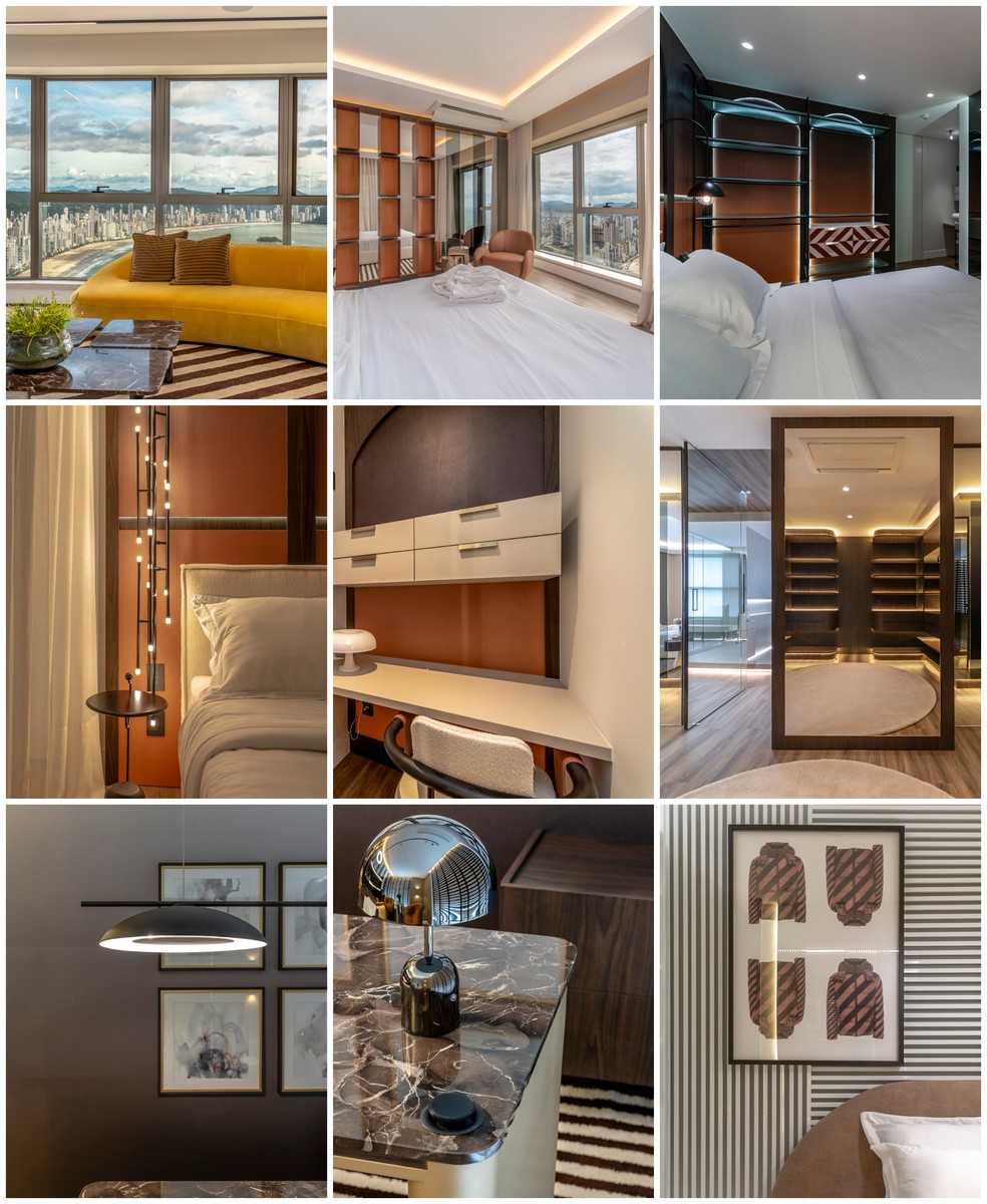 A área privativa de 265 m² inclui uma suíte master de 50 metros quadrados equipada com banheira de imersão, sauna úmida e closet sob medida, além de duas suítes com vistas panorâmicas para o mar e as montanhas. A automação residencial, oferecida pelo sistema Control4, permite o controle integrado de iluminação, som e climatização, oferecendo conforto e praticidade aos moradores.