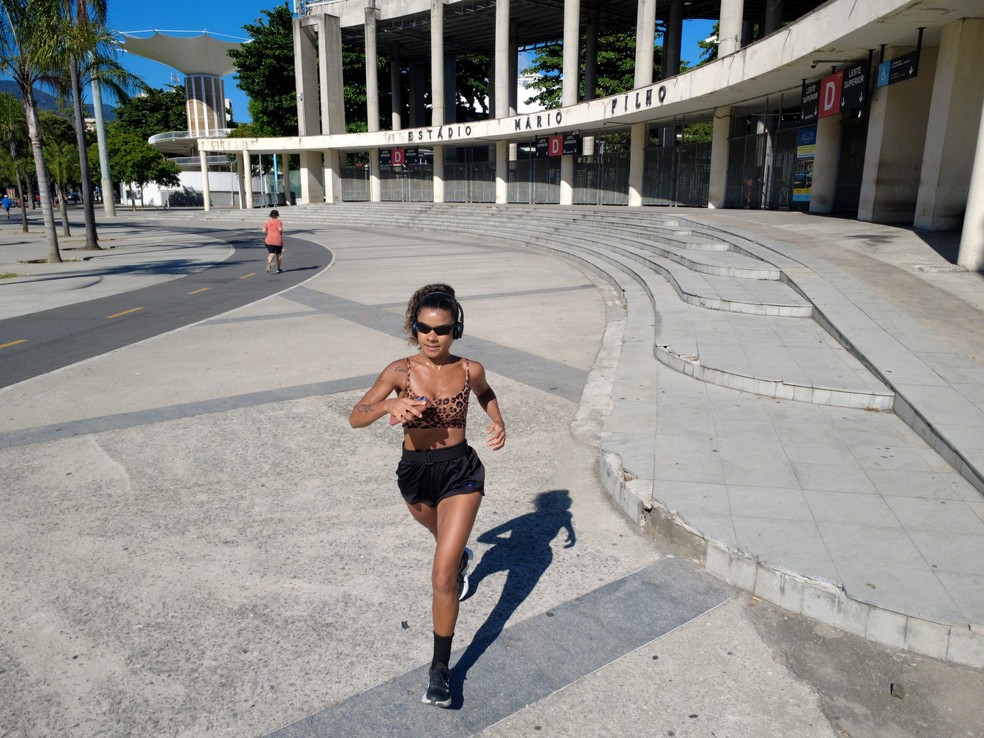 Ela explica que a corrida é a sua base para manter a saúde do corpo e mental. Programa quatro treinos na semana, de manhã, entre 5km e 7km, em volta do estádio do Maracanã. Como tem rotina puxada, que envolve o trabalho em sua empresa de eventos, a agenda como psicóloga organizacional, cuidados com a casa e com o filho Joaquim de 12 anos, muitas vezes precisa abrir mão das corridas.