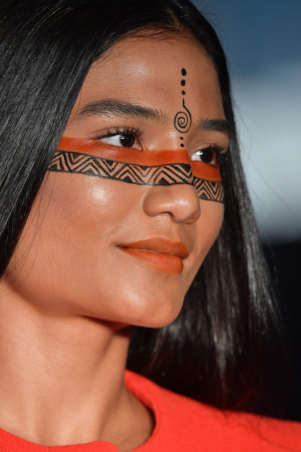 Dandara Queiroz, atriz e modelo indígena, é destaque do primeiro dia da São Paulo Fashion Week