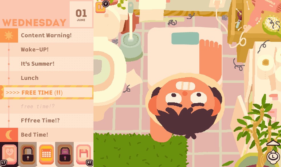 As leituras obrigatórias de verão se transformam em um minijogo, no qual é preciso mirar os olhos de Jenny no livro enquanto sua cabeça gira pelo quarto — uma representação literal de como sua atenção se dispersa.
