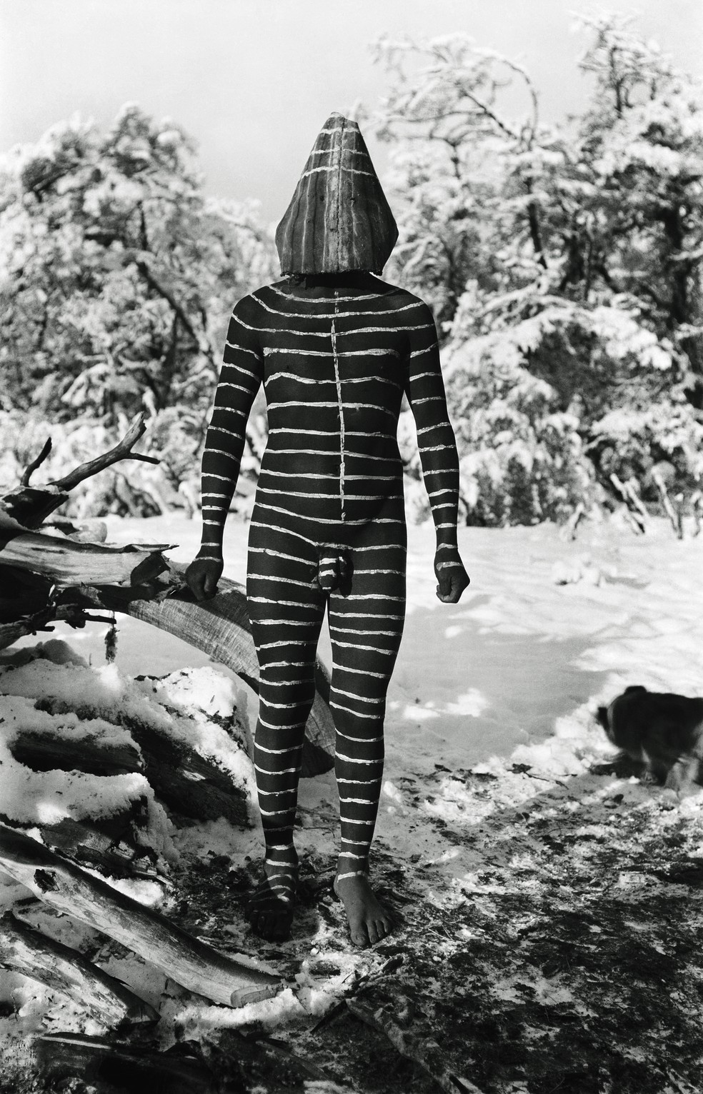 Ulen, o bufão masculino da cerimônia do Hain, ritual de iniciação que marca a passagem dos selknam à idade adulta, Terra do Fogo, Chile, 1923 — Foto: Martin Gusinde