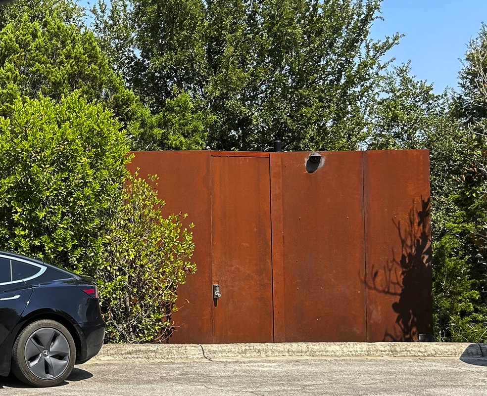 Ele comprou o imóvel em 2022 por meio de uma de suas empresas. Depois que a cerca de 4,8 metros e o portão foram erguidos, vizinhos reclamaram das estruturas e do aumento do tráfego na rua arborizada. Isso levou as autoridades de West Lake Hills a abrirem uma investigação.