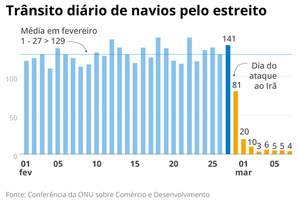 A comunidade internacional está mobilizada e discute formas de diminuir o impacto das ações militares no comércio global de petróleo. Alemanha e Japão anunciaram que liberariam reservas estratégicas para aumentar a demanda e controlar os preços, enquanto os países do G7 discutem fazer o mesmo. Trump anunciou que estaria disposto a “escoltar” com navios da Marinha americana os navios mercantes na região — uma solução que do ponto de vista militar e de custos é alvo de questionamentos. (Com AFP e NYT)
