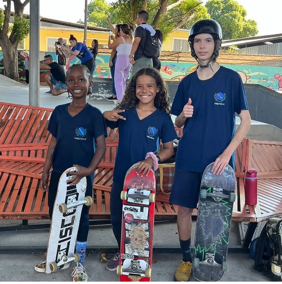 Brenda Moura (ao centro) é atleta do skate do Pedro II — Foto: Divulgação