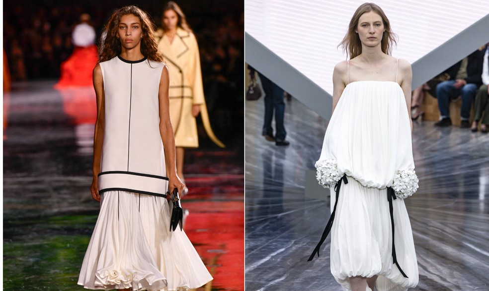 Brincadeiras, jogos e novas silhuetas prenunciam um verão 2026 mais alto-astral do que os anteriores. “Foi uma temporada de peças intercambiáveis, cheias de movimento ou volume, como peplum, drapeados e babados”, diz a analista de moda Paula Acioli. Na Saint Laurent, longos com ares de red carpet eram feitos de nylon, superleves.