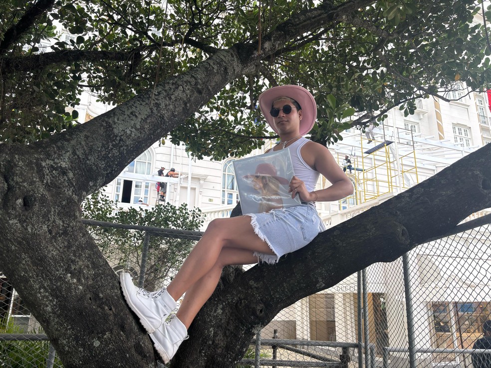 Há quem acredite que é melhor garantir um lugar do alto para se destacar na multidão. Lucas Rockets, de 26 anos, disse que ficou mais de duas horas no galho de uma das árvores do Copa na esperança de que a “Mother Monster” saísse em algum momento.