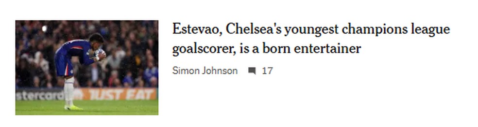 “Estevão, o mais jovem artilheiro do Chelsea na Liga dos Campeões, é um artista nato”, escreveu o The New York Times.