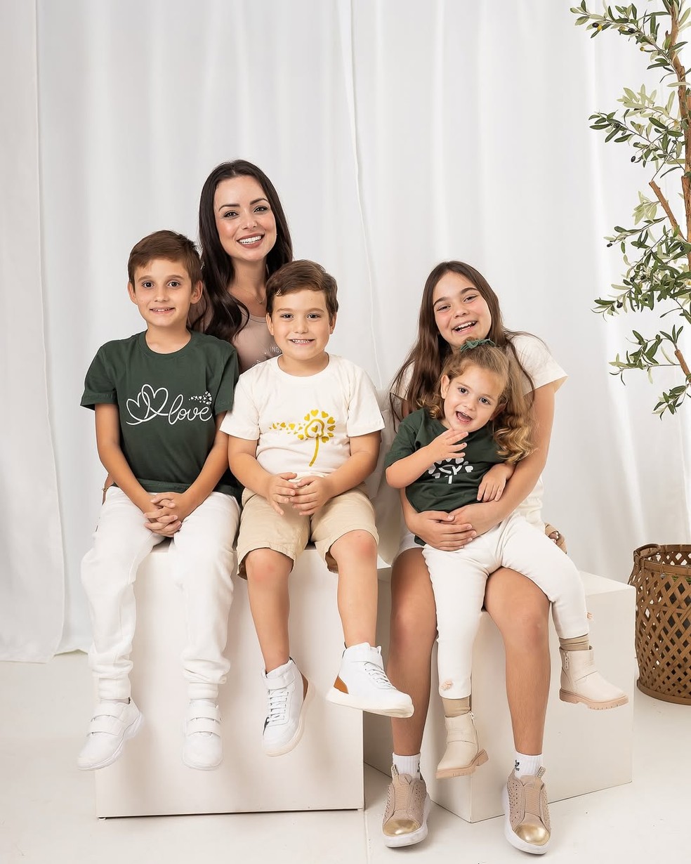 Ao longo das quatro gestações, Flavia enfrentou oscilações de peso, chegando a ganhar quase 30 quilos em cada gravidez, além dos efeitos da amamentação prolongada, que somaram mais de um ano para cada filho. “O corpo estica — a pele, os seios —, tudo muda. E eu queria me sentir bem, olhar no espelho e me reconhecer”, afirma.