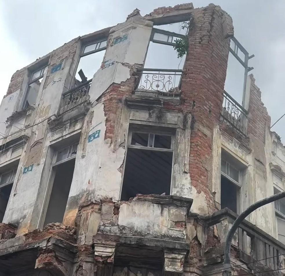 Segundo relatos, o casarão possuía três andares. Nos vídeos que circulam pelas redes sociais, é possível ver a fumaça densa tomando conta do local após o desabamento.