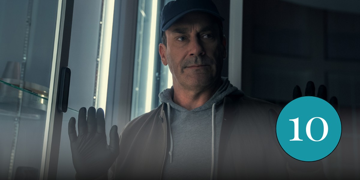 Para “Seus amigos e vizinhos”, série da Apple TV+. A produção tem um enredo bem amarrado que mistura drama, suspense e humor. Jon Hamm brilha no papel do protagonista, um ladrão rico.