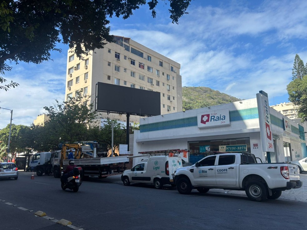 A Secretaria Municipal de Ordem Pública (Seop) retirou, na manhã desta terça-feira (21/10), um painel de LED irregular de propaganda que estava instalado na Rua Real Grandeza, altura do número 264, em Botafogo. A estrutura de 24metros quadrados e 9,5m de altura estava funcionando sem os licenciamentos municipais necessários e provocava queixas dos vizinhos principalmente devido à luminosidade, à noite.