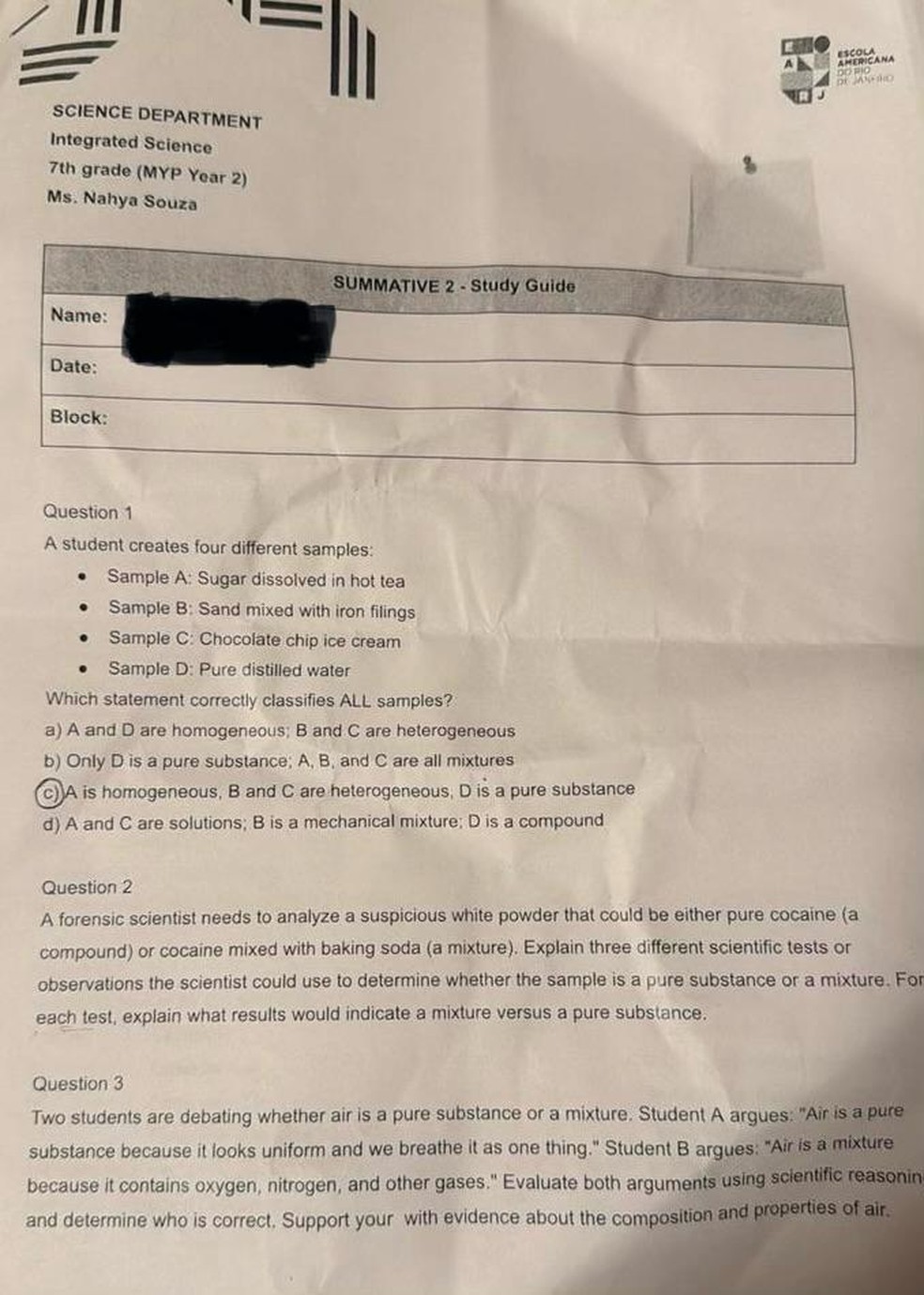 Uma prova de Ciências está dando o que falar na Escola Americana, colégio bilíngue da Gávea, na Zona Sul. No teste aplicado a alunos de 13 e 14 anos, a professora pergunta a diferença entre cocaína pura e misturada A questão, em inglês (veja abaixo), provocou revolta entre os pais, que foram à direção reclamar.