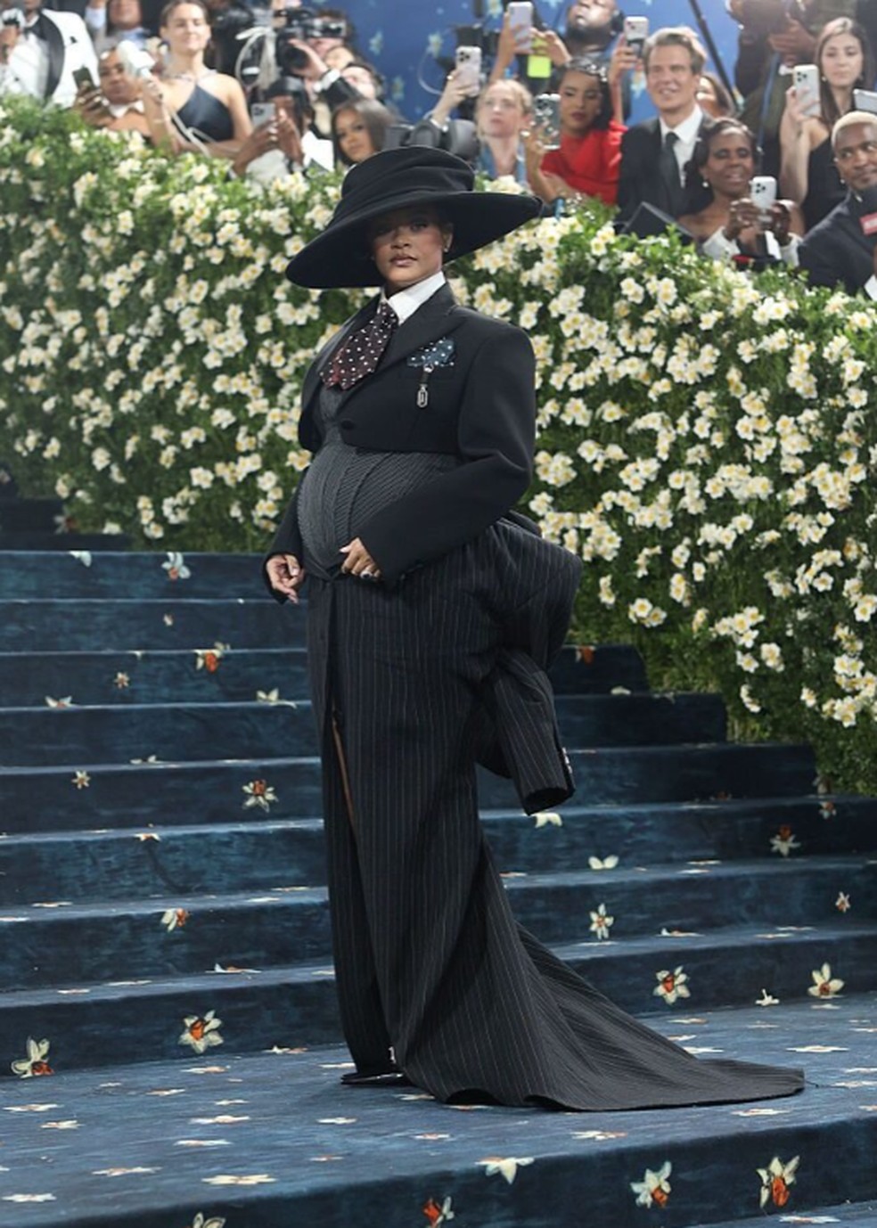 Seu companheiro, A$AP Rocky, copresidente do evento dedicado em 2025 ao dandismo negro, confirmou a notícia aos jornalistas que o parabenizaram no tapete azul do Museu Metropolitano de Arte (MET) de Nova York.