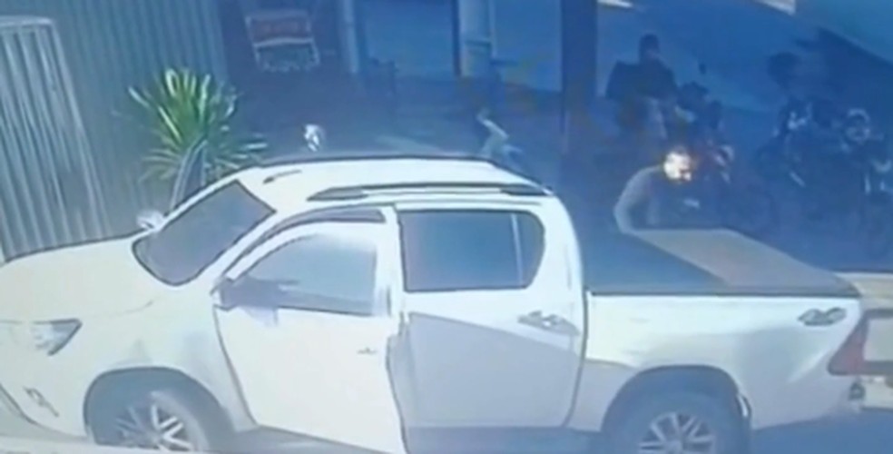 Imagens de uma câmera de segurança mostram o momento em que a agressora entra no carro do policial militar Ivan Guimarães da Silva, de 48 anos, para fugir após o esfaqueamento. Segundo a PM, o agente foi afastado das funções.