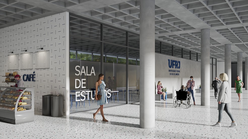 Circulação. O novo prédio terá pilotis e sala de estudos no térreo — Foto: Divulgação