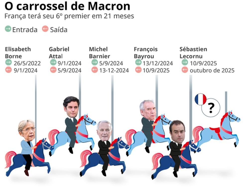 Depois da reforma das aposentadorias passada sem aprovação pública, ministro após ministro tentam encontrar uma fórmula para fechar as contas mesmo sem nenhum grupo político ter maioria clara na Assembleia. Nomeado no fim do ano passado, François Bayrou havia proposto cortar gastos sociais. Caiu em 9 de setembro, quando perdeu o voto de confiança dos parlamentares. No mesmo dia, foi substituído por Lecornu, que caiu na segunda-feira.