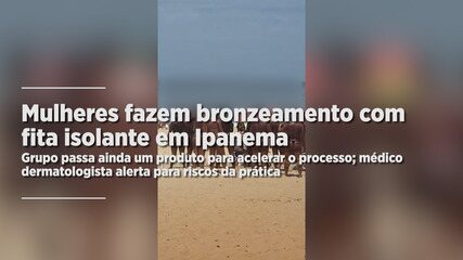 Mulheres fazem bronzeamento com fita isolante em Ipanema