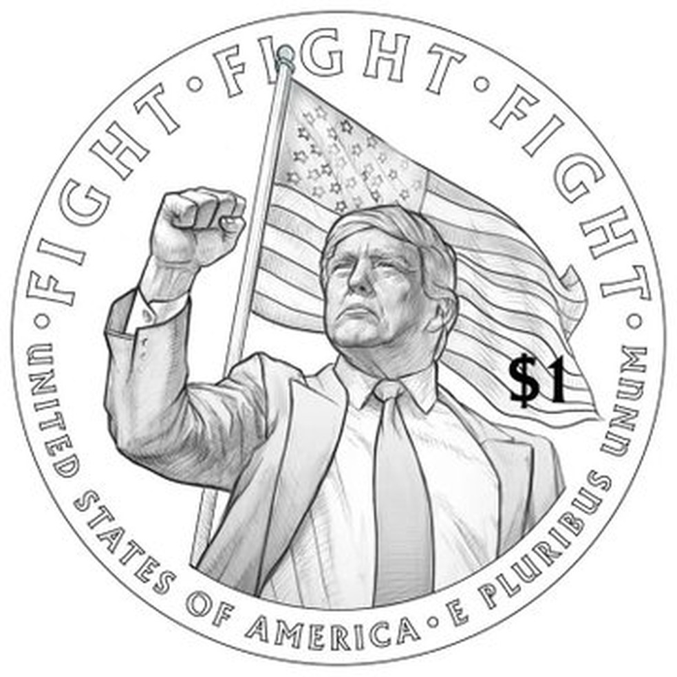 O outro lado da moeda retrata Trump com uma expressão desafiadora levantando o punho. A pose é semelhante à feita pelo presidente após escapar de um tentativa de assassinato num comício da campanha presidencial de 2024 na Pensilvânia.