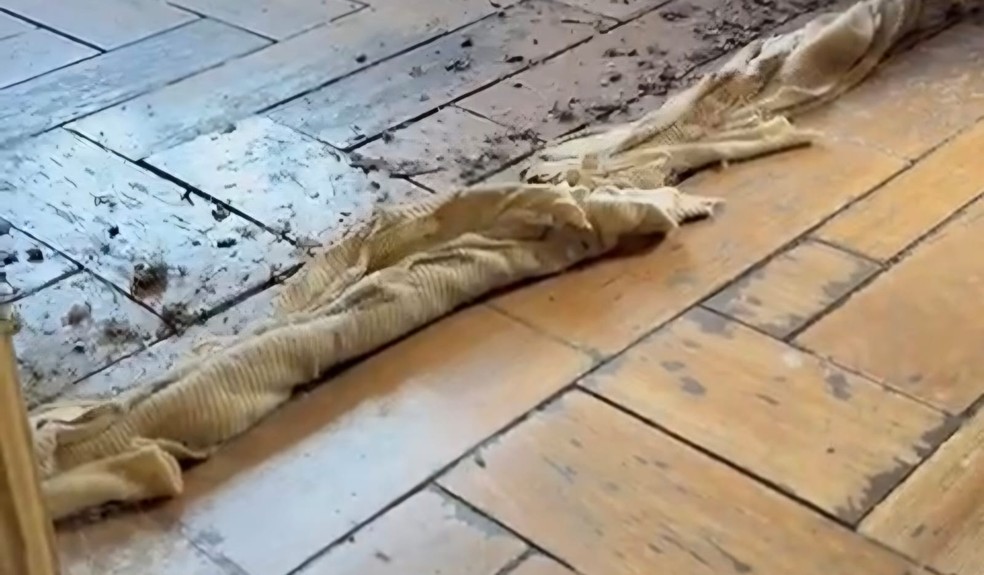 Pano foi usado para vedar fresta de uma porta — Foto: Reprodução