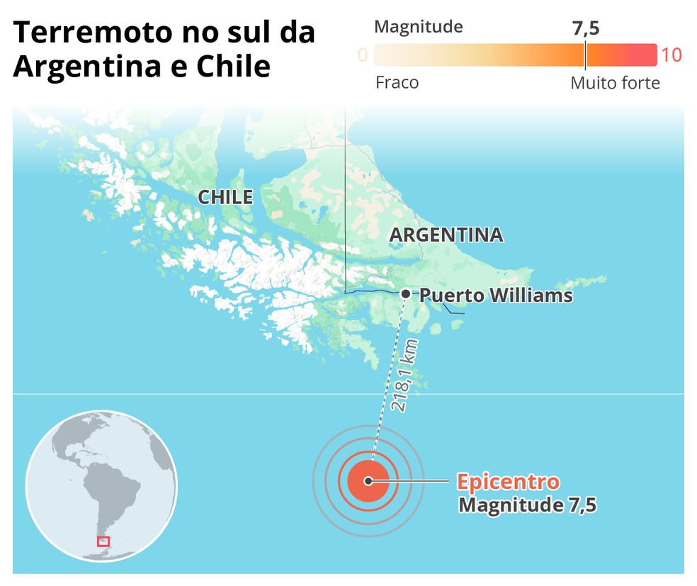 Terremoto magnitude 7,5 atinge sul do Chile e Argentina, autoridades alertam para tsunami
