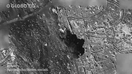 O vídeo, que aparenta ter sido gravado com um drone militar, mostra um grupo reunido em local não identificado. Segundos depois, há uma grande explosão, e a câmera revela uma grande cratera, sem que seja possível identificar possíveis vítimas ou danos aos veículos próximos. Não foi possível confirmar a autenticidade do vídeo de forma independente.