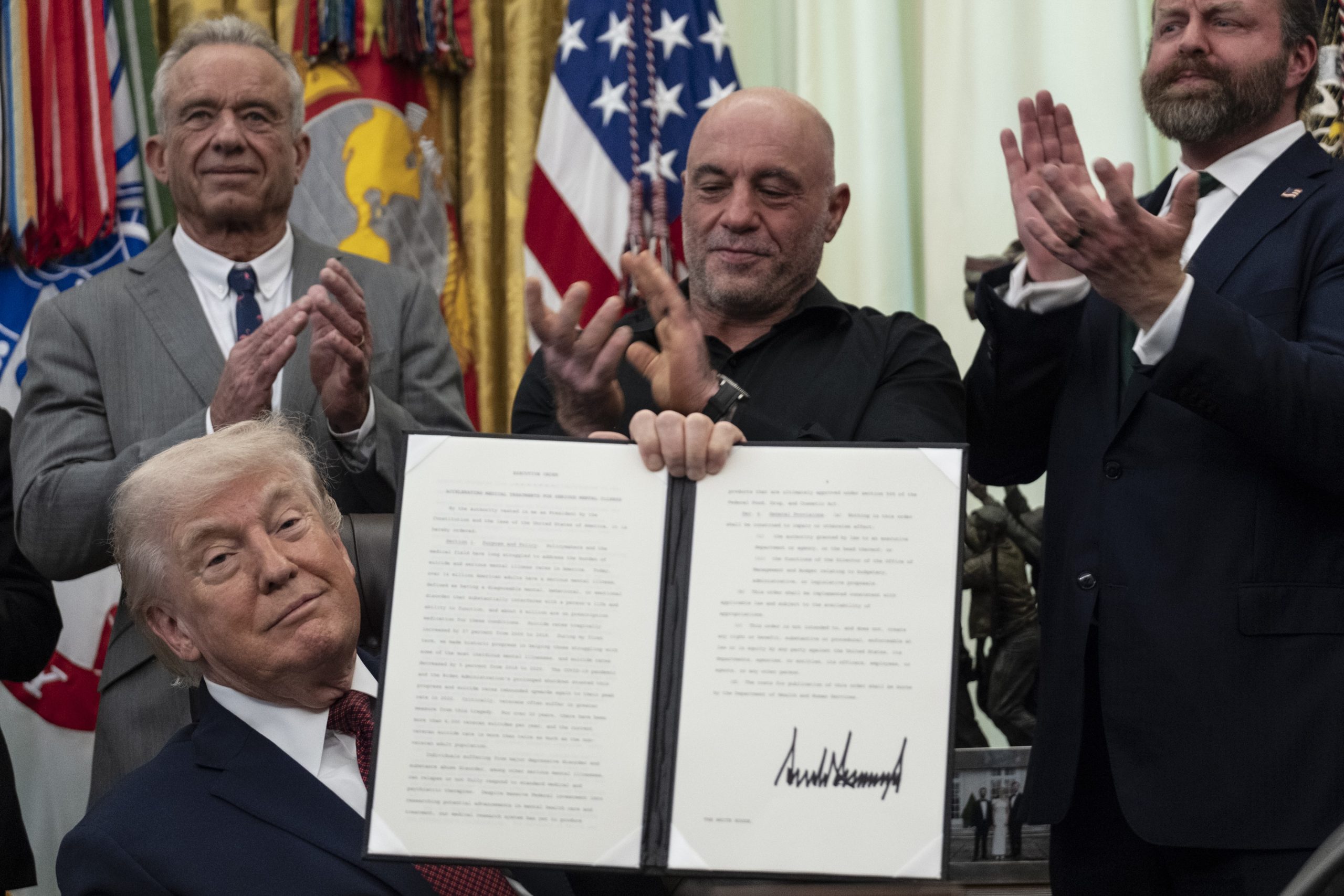 — Tenho o prazer de anunciar reformas históricas para acelerar drasticamente o acesso a novas pesquisas médicas e tratamentos baseados em drogas psicodélicas — disse Trump no Salão Oval, onde estava acompanhado por vários membros de alto escalão do gabinete e pelo podcaster Joe Rogan.