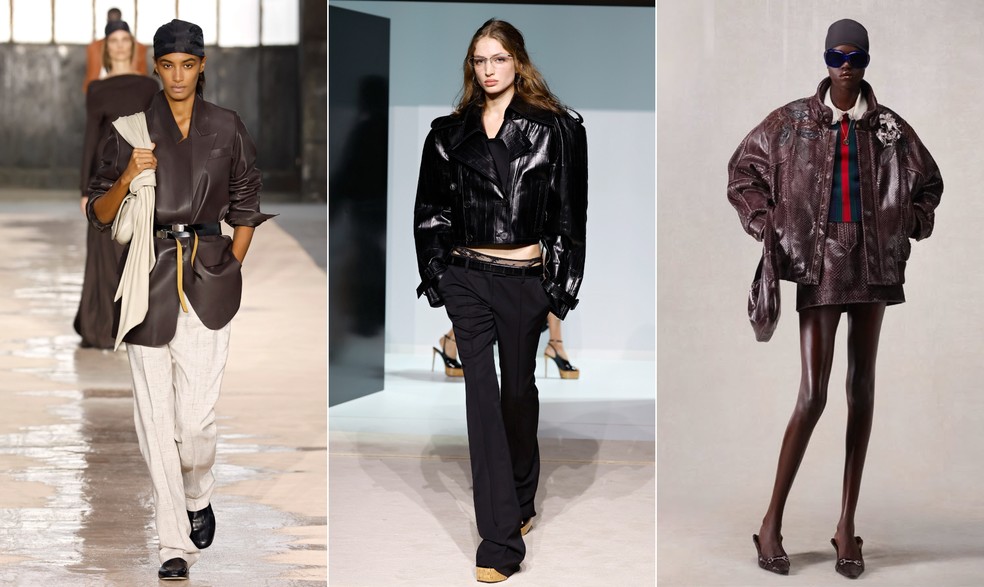 As coleções de verão desembarcam no Brasil em pleno outono, ocasião perfeita para investir em um novo casaco de couro. “É um item fundamental para marcas italianas, que são especialistas nesse material, para dar uma opção carry over às clientes”, explica Laura Rysman. A peça surge repaginada, em tons atemporais como preto, marrom e caramelo, mas com shapes que fogem do óbvio. “Novos exercícios de modelagem abrem possibilidades para clientes que não querem mais do mesmo”, diz Manu Carvalho. Na Dolce & Gabbana, ele aparece oversized e maleável, já na Boss e na Jil Sander, ganha ares de blazer revisitado. Enquanto na Gucci e na Versace assume a silhueta esportiva do bomber.