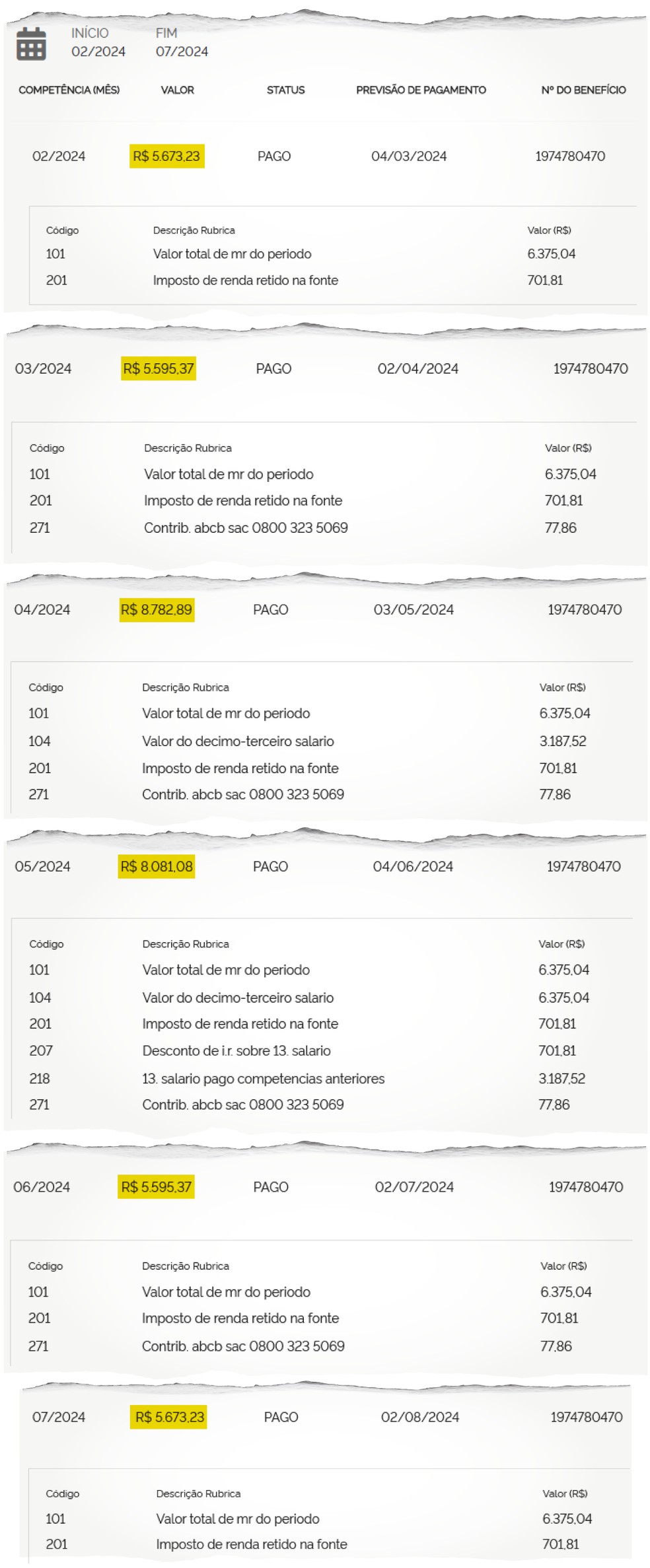 A ex-assessora parlamentar Patrícia Coimbra, de 60 anos, identificou um desconto mensal indevido de R$ 76,86 em sua aposentadoria. O valor, segundo ela, foi transferido sem autorização para a Associação Beneficente Backmann Nacional (ABCB), uma das entidades investigadas pela Polícia Federal (PF) por suposto envolvimento em fraudes nos descontos de benefícios do INSS.