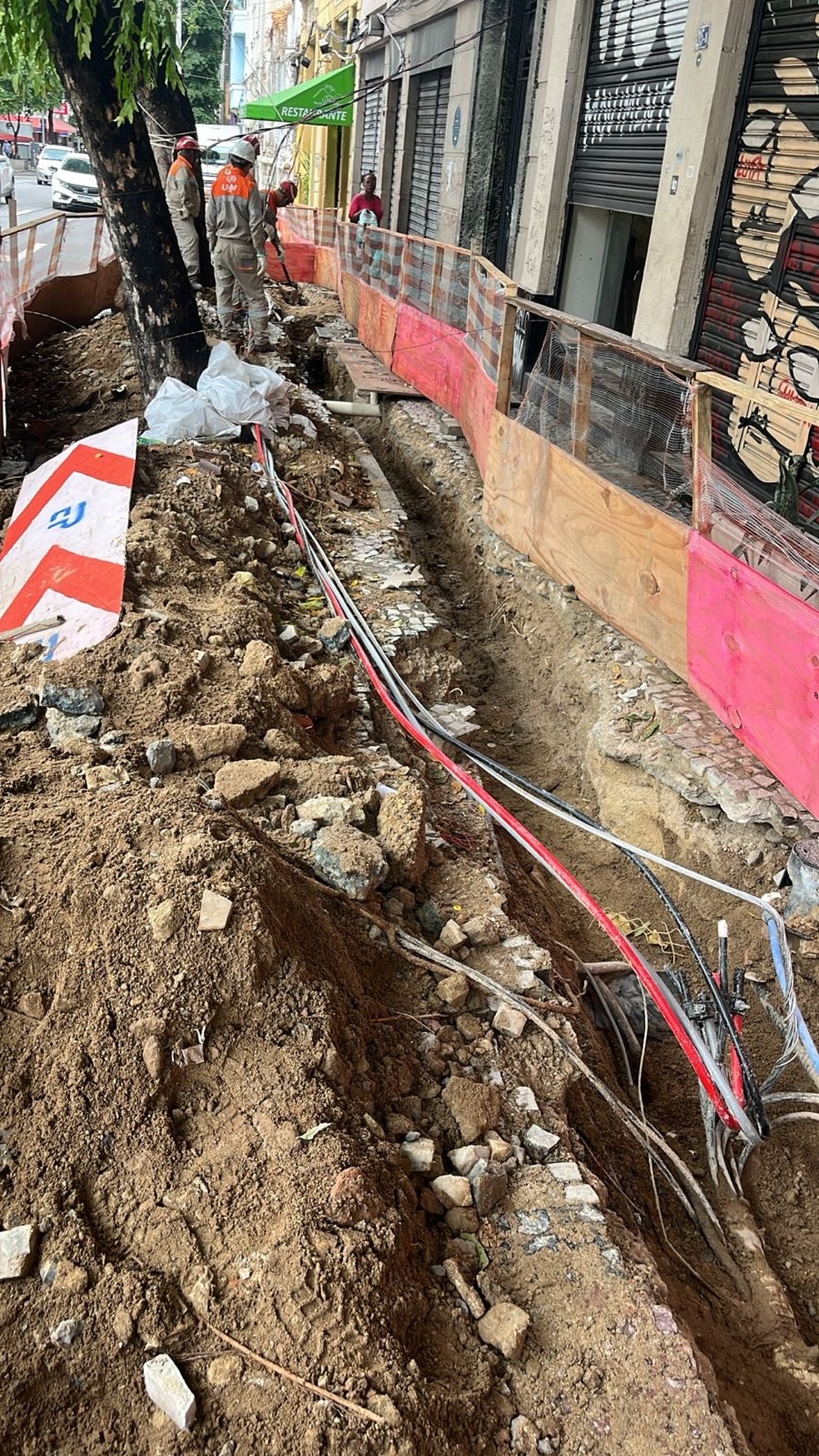 Obra da Light interdita calçada há dias na Avenida Mem de Sá — Foto: Foto de leitor