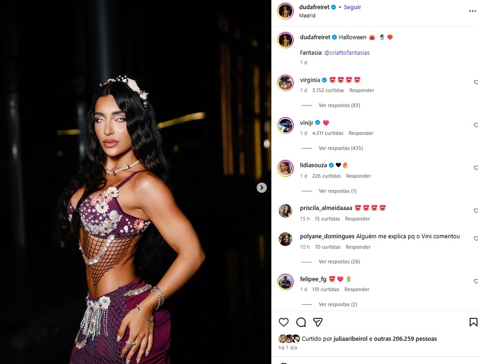 Duda havia postado um carrossel de fotos de sua fantasia durante uma festa de Halloween, onde apareceu ao lado de amigas e também de Virgínia. Vini, que também estava presente no evento, apareceu em algumas das imagens. Contudo, foi o comentário do jogador, um singelo coração vermelho, que acabou se tornando o verdadeiro centro das discussões.